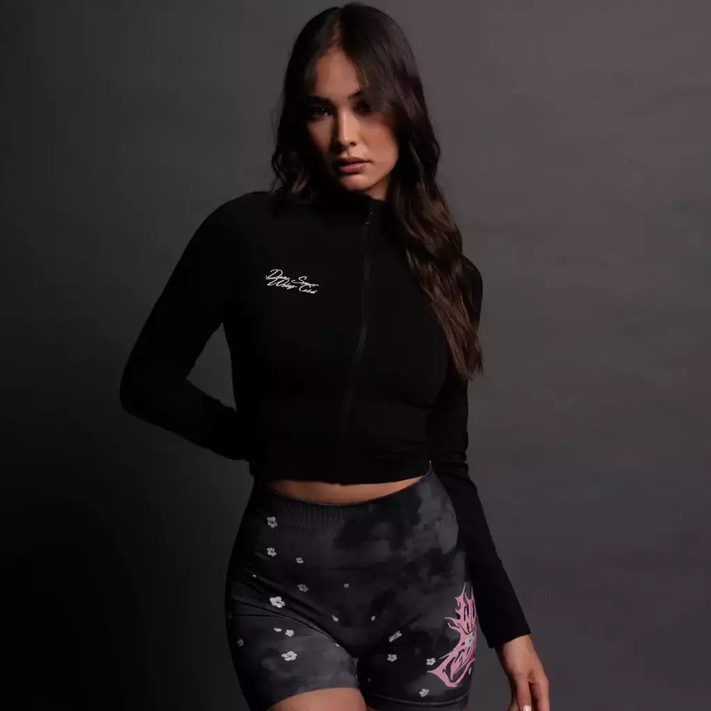 Written In Stone "Everson Seamless" Yasmin L/S Zip Top - Black