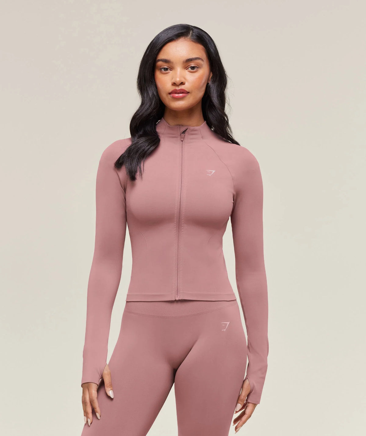 Ideal para tus sesiones de estudio y el uso diario, esta chaqueta presenta una cremallera en la cintura y aberturas para los pulgares que mantienen las mangas en su lugar. Las mangas de doble capa y las lÃneas moldeadoras en el frente ofrecen un diseño cómodo y favorecedor. El tejido cubre la parte superior de la cremallera para un acabado limpio, mientras que los tonos neutros y logotipos discretos facilitan su combinación. Con materiales suaves y sin costuras, proporciona un ajuste cómodo y ceñido. Está compuesta por 93% nailon y 7% elastano.