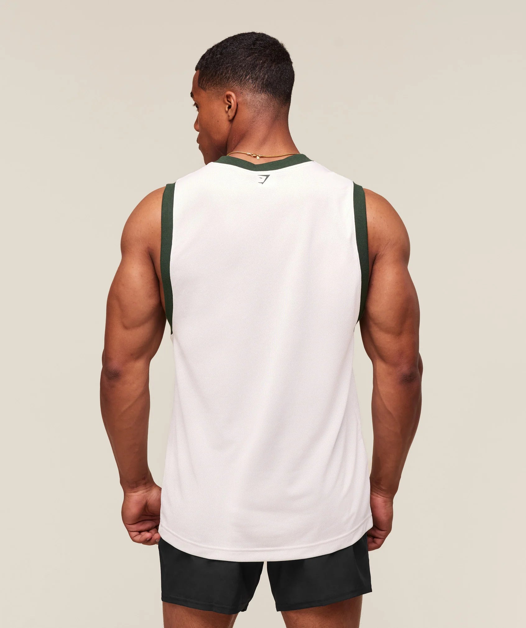 Este top tipo tank sin mangas en color blanco presenta un diseño inspirado en el estilo colegial. Perfecto para mantenerte fresca en tus entrenamientos o en tus outfits casuales. Cuenta con cuello redondo y sisas amplias para mayor comodidad. Su tejido ligero te brindará libertad de movimiento durante todo el día. Lleva un gráfico frontal con estilo universitario. El modelo mide 1.70 m y usa talla S.